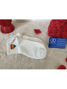 Affirmez votre style avec douceur et subtilité grâce à ces chaussettes blanches ornées d’un petit cœur arc-en-ciel brodé. Un clin d'œil tendre à la tolérance et à l’amour sous toutes ses formes 💖 🧦 Détails du modèle : Chaussettes blanches basses Petit cœur brodé arc-en-ciel côté...