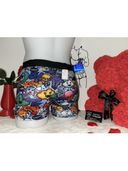 🎨 Explosion de style avec ce boxer ultra funky : tags, emojis, roller, palmiers, "#BFF", "BOOM", "MOM" et tutti quanti !💥 Parfait pour affirmer ta vibe urbaine, colorée et sans complexe. 📏 Taille à plat (cm) : Taille (ceinture à plat) : 37.5 cm 🧵 Composition : 93 % Polyester...