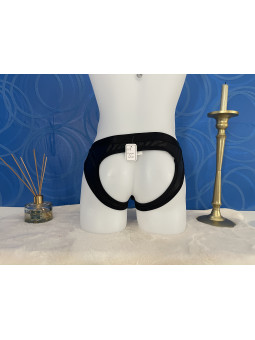 ✨ NOUVEAUTÉ HOT ✨ Mettez vos formes en valeur avec ce jockstrap noir ultra sensuel en effet cuir ! Sa coupe ouverte et ses bandes élastiques latérales mettent parfaitement en avant votre anatomie tout en assurant maintien et confort. Idéal pour une soirée torride, un shooting, ou tout simplement...