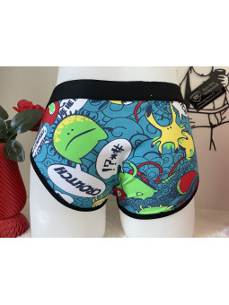 Un sous-vêtement fun, original et ultra-confortable qui va mettre de la bonne humeur dans votre tiroir à lingerie ! 🖼️ Design : Imprimé BD multicolore avec bulles, personnages et onomatopées Ceinture noire élastique large pour un maintien parfait Finitions contrastées noires pour...
